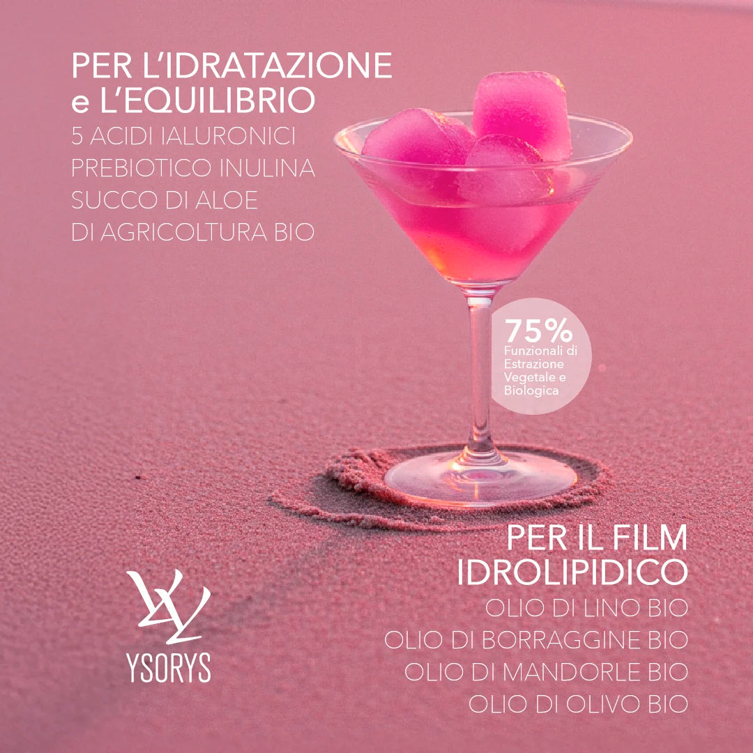 Tra gli attivi più caratterizzanti, il prebiotico Inulina, l'Acido Ialuronico in 5 pesi Molecolari, ed un Pool di Oli Vegetali da Agricoltura BIO